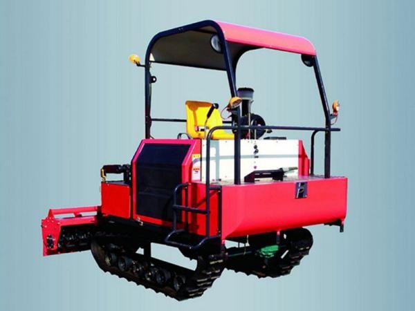 履帶自走式旋耕機由動力部件、履帶式底盤部件、操縱部件、旋耕機部件組成。因其具有碎土能力強、耕后地表平坦等特點,而得到了廣泛的應用,同時能夠切碎埋在地表以下的根茬,便于播種機作業(yè),為后期播種提供良好種床