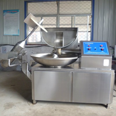 斬拌機是肉類及蔬菜制品制作工藝中一個關鍵設備。它不僅能將肉塊、碎肉、脂肪等主要原料精細的切碎,還能同時將其它原料和水、冰屑、調料、附加品同肉末一起攪拌成均勻的乳狀物,使腸類產品的細密度與彈性大大增強,是生產腸類、水產食品必不可少的設備。根據不同的要求選擇適當的轉速,可以縮短運行時間,減少物料發熱量,可保持餡料的天然色澤和風味。另外,對于蔬菜瓜果的加工效果明顯,如生姜 大蒜 洋蔥 大蔥 土豆 白菜 等果實及菜類,可根據加工時間不同將產品加工到不同程度,從而滿足用戶要求。