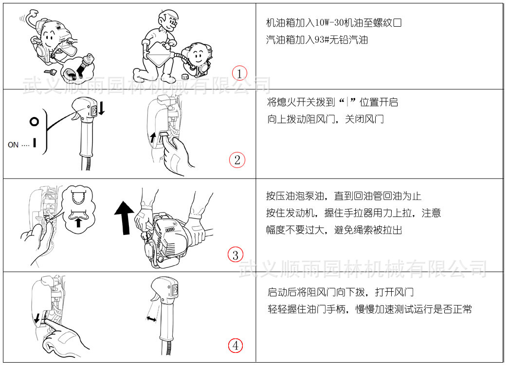 四沖程割草機啟動方式: