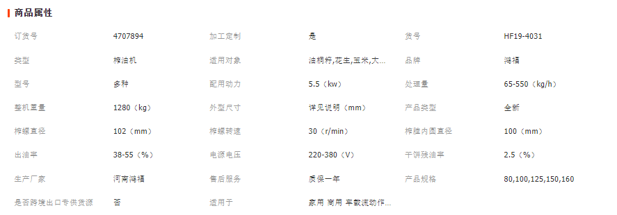 螺旋榨油機技術參數: