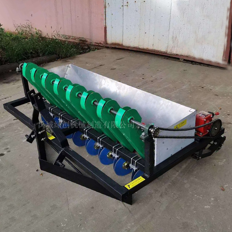 采用拖拉機后懸掛動力成本低廉,結構簡單,便于規模化作業。可以提高播種效率,實現大蒜播種的機械化。間歇連續點種,種植行距株距和點種頻率。種植的疏密程度和播種均勻。