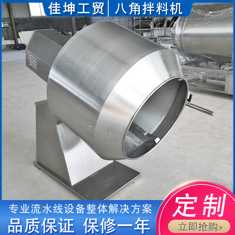 八角拌料機該機主要用在油炸食品的拌糖(如,紅桔餅、角蜜、金果、口酥等)、拌芝麻(如,芝麻球、開口笑、芝麻條等)、休閑食品拌佐料(如,鍋巴、毛耳、香辣脆等)。