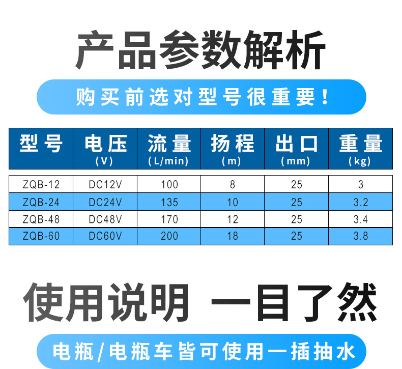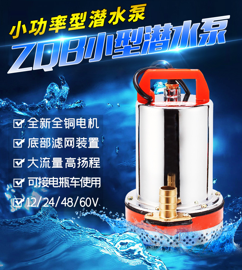 超韓ZQB不銹鋼直流潛水泵12v24v48v60v農(nóng)用灌溉抽水小型電瓶水泵