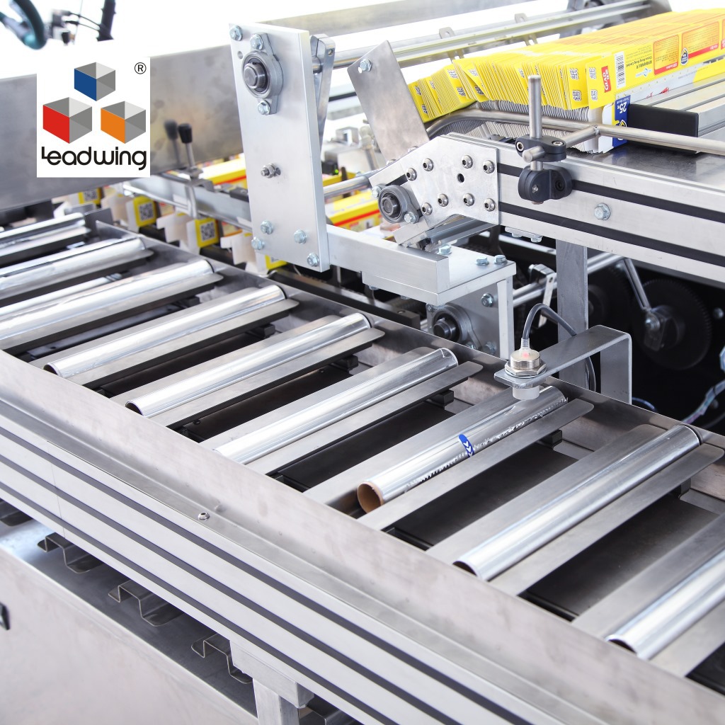 性能特點:由傳感元件,光電,機械過載保護等裝置組成監(jiān)視、報警、故障顯示系統(tǒng),并設(shè)有無產(chǎn)品不供應(yīng)紙盒、無紙盒不噴膠、進盒不到位報警、連續(xù)多次無產(chǎn)品或過載自動停機等系列保護措施,以確保機器安全運行。