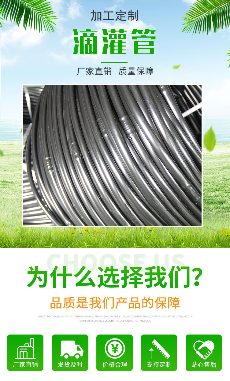 規(guī)格16壁厚0.6*滴頭間距500mm,16壁厚0.6*滴頭間距300mm,16壁厚0.6*滴頭間距200mm,16壁厚0.8*滴頭間距500mm,16壁厚0.8*滴頭間距300mm,16壁厚0.8*滴頭間距200mm,16壁厚1.0*滴頭間距500mm,16壁厚1.0*滴頭間距300mm,16壁厚1.0*滴頭間距200mm,20壁厚1.0*滴頭間距500mm,20壁厚1.0*滴頭間距300mm,20壁厚1.0*滴頭間距200mm