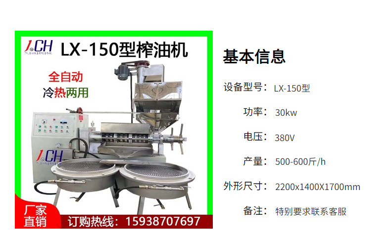 廠家貨源現(xiàn)貨冷熱150型商用自動(dòng)榨油機(jī) 生花生商用中型油坊榨油機(jī)