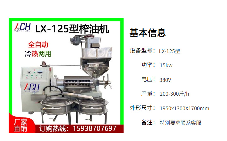廠家直供現貨全自動125螺旋榨油機 核桃商用中型全自動油坊榨油機