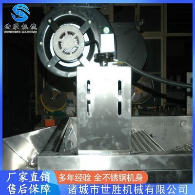 采用多次翻滾多臺風機吹。該機主要應用于軟包裝表面水分的吹干,適合于水煮菜,調味菜,醬類,鹵肉,鹵蛋等采用塑料包裝的食品,經過高溫(低溫)、冷卻后,用本機將包裝袋表面水分吹干,以便迅速裝箱入庫,本機采用低功率,低噪音的風機,吹風口成刀狀,吹干風溫為常溫,有效保護物料本身的色澤和品質,效果更佳。本機具有應用廣泛,吹干效率高,操作方便等特點 適用于高低溫肉制品、蔬菜制品等軟包裝產品除水工作,亦適用于蔬菜清洗后表面水的去除。通過多次翻身瀝水,及上部高壓強冷風吹,使軟包裝達到表面水珠吹干的效果(袋面皺紋間的存水也能干)。此設備與相連并速度同步,每臺風機:0.75KW,設備環保節能。 設備特點 有效去除了物料表面水滴,大大縮短了貼標、裝箱的工作時間,適宜流水線作業,提高企業生產自動化程度。吹干風為常溫,有效保護物料本身的色澤和品質,這種軟包裝風干機是包裝食品所要經過的一道的工序。尤其是一些包裝的肉類或者是蔬菜類的食物,經過清洗之后,表面會殘留的水分,如果不把這些水分及時的弄干,就進行包裝,那么,清洗過的蔬菜或者是肉類很容易因為殘留的水而發生變質或者是腐爛。軟包裝風干機通過對食物進行多次的瀝水并且再加上對食物進行較強的風力吹動,就可以迅速的把食物表面的水分蒸發掉,然后再對食物進行包裝就可以了。 出風嘴子用1.5mm不銹鋼板進行滿焊。 采用大風量風機 鏈條采用獨立傳動系統 為防止物料刮擦,網帶兩側加有毛刷防護 設備采用全不銹鋼制作 設備上方加有不銹鋼罩,防止風量大將產品吹出 設備尺寸可根據客戶要求定制。