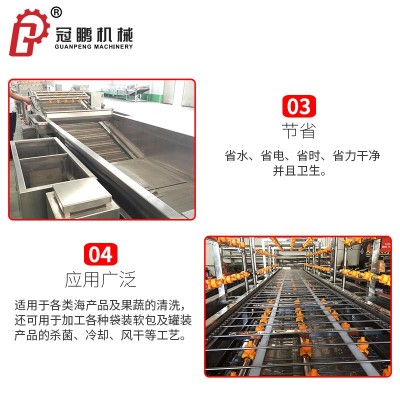 1、 適用于加工各種袋裝及罐裝產品,如野菜、水煮菜、肉類、釵頭或軟包裝等殺菌,冷卻、風干。
