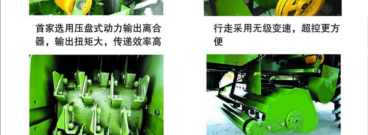 該機(jī)設(shè)計新穎,外觀美觀,結(jié)構(gòu)緊湊,整機(jī)重心配置合理,噪音低,車身短,轉(zhuǎn)彎半徑小,操作靈活,自行開割道,橫著割地頭,作業(yè)效率高,配置125馬力名優(yōu)發(fā)動機(jī),節(jié)能環(huán)保,16輥剝皮機(jī),剝凈率高,行走邊減變速箱,無極變速,前置切碎中置還田,苞葉粉碎,液壓轉(zhuǎn)向,液壓卸糧,雜余回收。一次性完成玉米作物的摘穗、剝皮、苞葉粉碎、秸稈粉碎還田、集糧等作業(yè)過程。