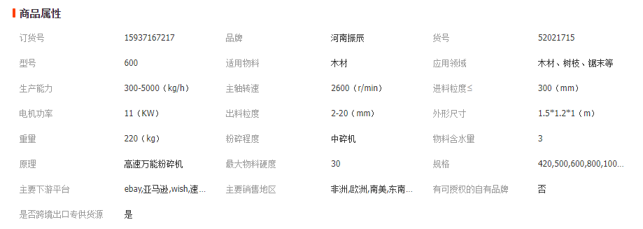 詳細信息 商品描述 【適用范圍 】 木材粉碎機適用于木塊、木材、竹子、木片、秸稈竹木粉、果殼、中草藥、樹皮、樹葉、麥麩、磨芋、玄麻、稻殼、玉米芯、桔桿、淀粉、糧食類、海藻、脫水蔬菜、紙張、線路板、塑料、化工原料、珍珠巖、酒糟、糠醛、木炭、活性碳、豆粕、棉花、牛皮、羊皮、植物根、莖、果,各種食用菌等數百種疑難物料的加工,是化工、建材、醫藥、養殖、食品、蚊香等行業中常用粉碎機。(注:易燃易爆物不能粉碎加工) |