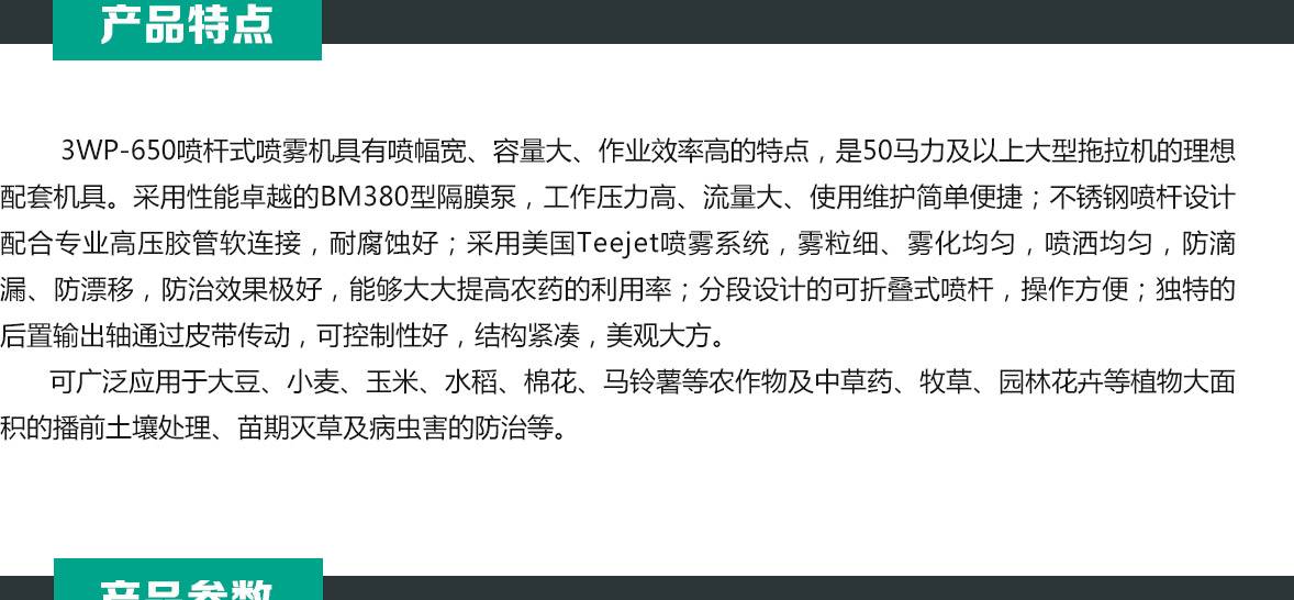 華盛泰山3WP-650懸掛式噴桿噴霧機