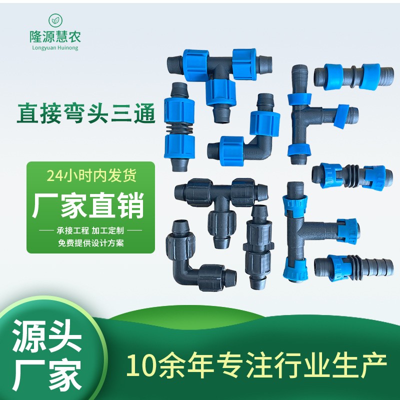 16滴灌帶鎖母直接 滴灌管鎖母彎頭三通16拉環直接20pe管直通三通