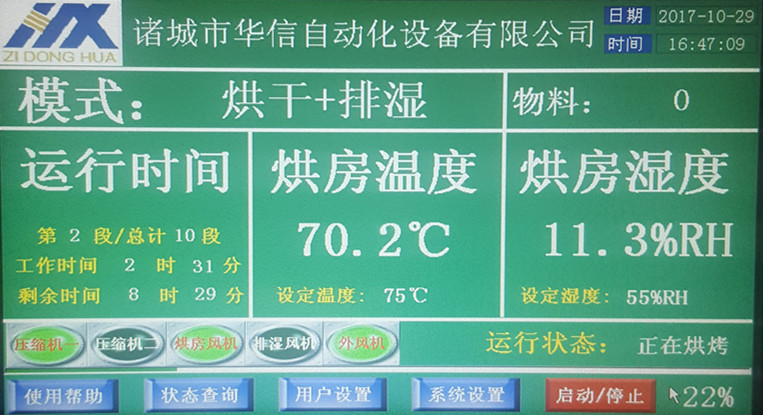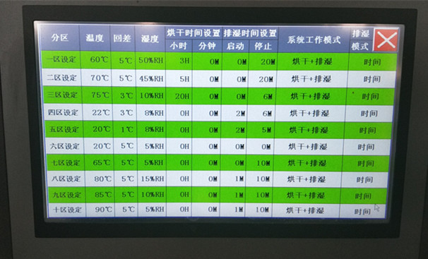 ?實時顯示烘房內溫度、濕度、時間等各功能的運行狀態?