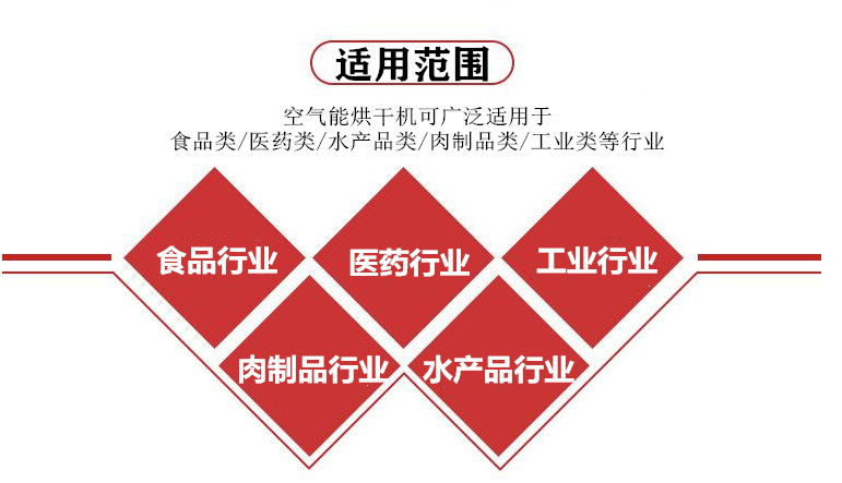 應用領域食品烘干、肉制品烘干、水產品烘干、中藥材烘干、工業烘干