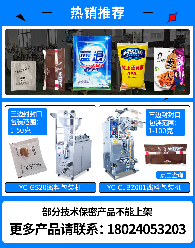 詳細信息 訂貨號YC20201010013 加工定制否 貨號20201010013 功能打包,灌裝,計量,封口,充填,條碼識別、打印 品牌優創機械 型號YC-YJ013 電壓220(V) 功率1.8(Kw) 包裝膜寬40-260(mm) 制成袋尺寸20-130(mm) 包裝速度40-70(袋/分鐘) 重量480(kg) |