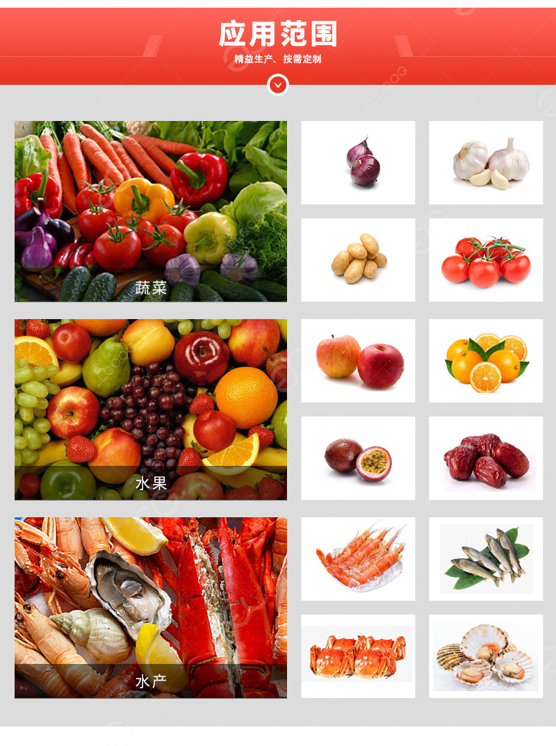 滾杠分級機特點: 1. 滾杠分級機適用于球狀果蔬或長圓形果蔬的選果挑選; 2. 滾杠材料可選擇; 3. 該機具有簡潔美觀,輸送平穩,操作簡單,方便聯線等特點。 |