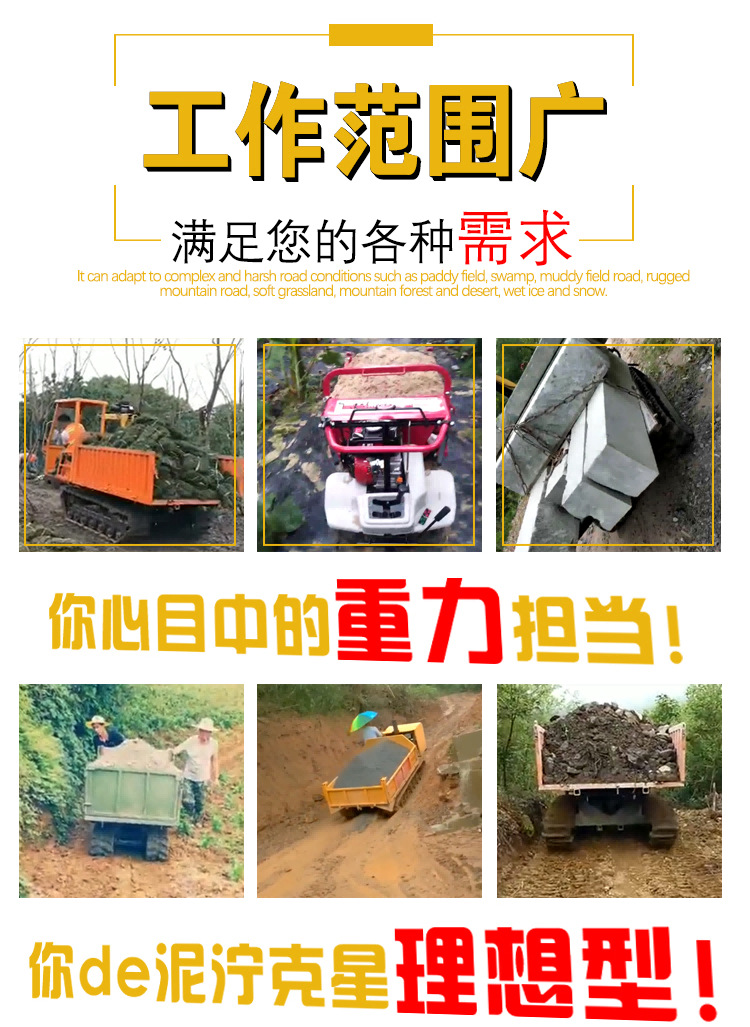 爬山虎運輸車柴油四不像爬坡王小型全地形手推式農用履帶運輸車