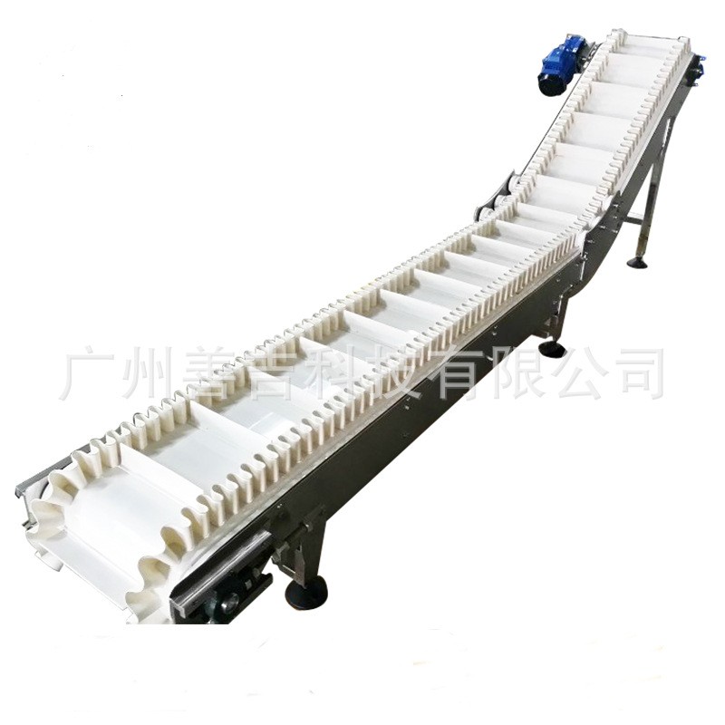 自動(dòng)化生產(chǎn)流水線食品級(jí)皮帶塑料網(wǎng)鏈板白色擋板帶裙邊爬坡輸送機(jī)