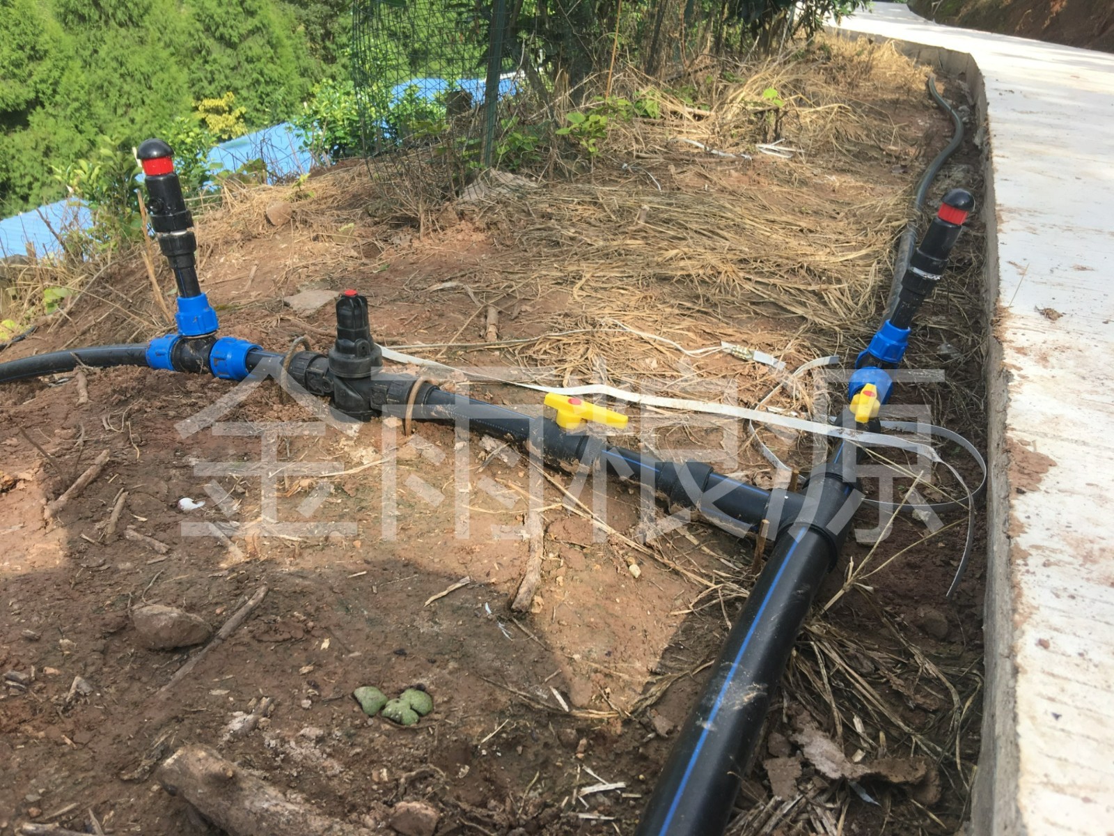 灌溉系統配置:自清洗過濾器+無線閥控系統+注入式施肥系統+一出四滴劍