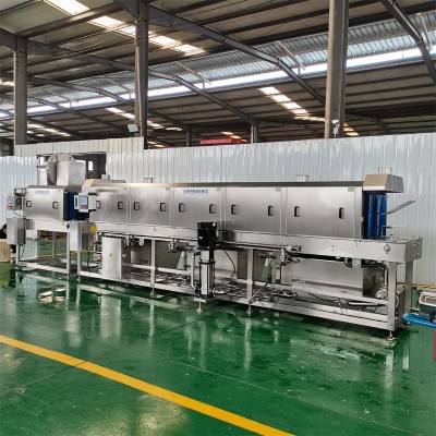 我們的洗筐機一般采用6米長制作,分為四段清洗,預洗、主洗、漂洗和沖洗,根據客戶的要求后面可加吹干機,可進行對筐子、托盤等的吹干