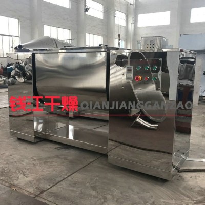 通軸槽形混合機是臥式單軸型的,它將兩個相反方向的旋轉的葉輪安裝在同一軸心連接的臥槽中,槽底是半圓形的,整個料斗是U形體,葉輪是由一端驅動,出料時通過電動或人工的方法將槽傾斜,達到出料的目的。其設備適用于粘性或有凝聚性比較高的粉粒體的混合,其運轉比較平穩,混合作用好,能在很短時間內得到均勻的混合物,混合作用溫和,受剪切作用小,不易破壞物料的原始狀態,經濟性好,能耗底。該機結構緊湊,裝料系數大,裝置所占的空間 和作用面積小,易清洗。