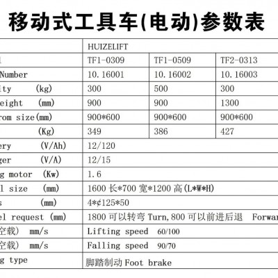 電動移動式工具車12V蓄電池上升下降
