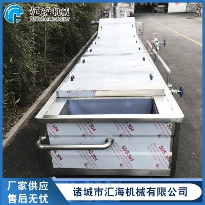 (果蔬漂燙殺青)巴氏殺菌機(jī)特點(diǎn):本機(jī)以熱水為介質(zhì),整體采用不銹鋼制作,無(wú)極變頻調(diào)速、噪音低、運(yùn)行平穩(wěn),可根據(jù)產(chǎn)品的要求對(duì)溫度和時(shí)間進(jìn)行任意調(diào)整。該機(jī)結(jié)構(gòu)緊湊、操作方便、故障率低,加熱方式采用鍋爐蒸汽、鍋爐熱水加熱,特別適合連續(xù)蒸煮作業(yè)。設(shè)備采用手自控溫系統(tǒng),水質(zhì)升溫快、受熱均勻、溫差小、溫度可調(diào),水浴式巴氏殺菌功能可有效的將物料均衡的混合在介質(zhì)水中,提供了對(duì)物品的(果蔬漂燙殺青)巴氏殺菌,更有效地對(duì)產(chǎn)品進(jìn)行護(hù)色處理,雙層網(wǎng)帶式設(shè)計(jì)可將物料全部壓制在水中,避免物料因浮力造成的漂燙不徹底。設(shè)備帶有機(jī)械提升臂可以把整個(gè)槽體提升起來(lái)便于網(wǎng)帶底部和設(shè)備的清洗。上蓋處帶有水密封裝置,可以避免蒸汽在間隙間泄露。可調(diào)速式輸送系統(tǒng)可有效的控制產(chǎn)品的(果蔬漂燙殺青)巴氏殺菌時(shí)間,合格的完成產(chǎn)品的連續(xù)(果蔬漂燙殺青)巴氏殺菌工藝。