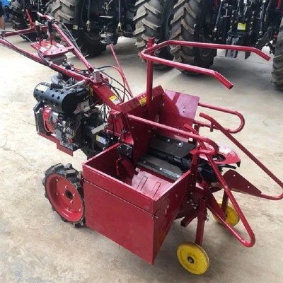 8馬力汽油玉米收割機 手推式玉米收獲機也粉碎秸稈 每小時2畝左右一次完成一行的玉米摘穗和秸稈粉碎功能。配套有集穗斗滿了可以取下灌袋子,留茬高低可調,張緊離合器工作安全,轉彎半徑小好操作。該機每小時收貨玉米一到兩畝地秸稈直接粉碎,扒皮干凈,穗位高度60厘米以上就可以收割,秸稈越高光棒率越大。