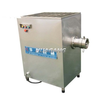 華鋼絞肉機是肉制品生產行業中通用性高適用范圍廣的一種肉食加工設備。它是依靠螺桿將料箱中的原料肉推到預切板處,通過螺桿的旋轉擠壓使孔板與絞刀產生相對運轉,從而將原料肉切成顆粒形狀,確保了肉餡的均勻性。通過孔板的不同組合可達到理想要求的不同肉餡。