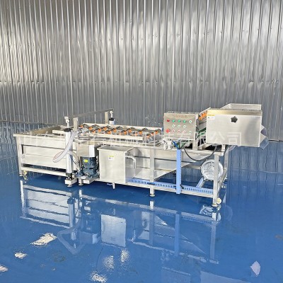 清洗機(jī)采用氣泡清洗,有效分離被清洗物表面附著物,模擬人工清洗基本動作并有效避免了人工清洗中的碰、磕、劃傷等現(xiàn)象,提高了工作效率,變?nèi)斯ぷ鳂I(yè)為機(jī)械化加工。適合于各種新鮮蔬菜、鹽漬菜、菌類、海產(chǎn)品。根據(jù)所清洗物料比重的不同,設(shè)計了兩種型號:全網(wǎng)帶型、半網(wǎng)帶型。半網(wǎng)帶型適合于物料比重小于或等于水的物料,全網(wǎng)帶型適合比重大于水或怕碰傷的物料。