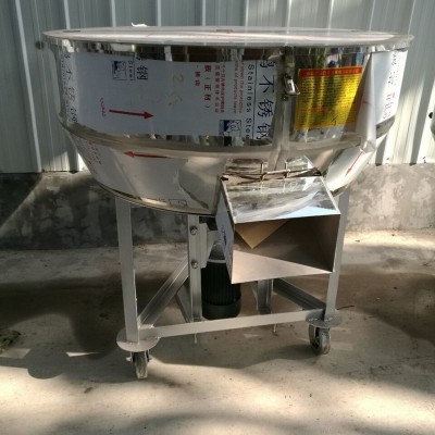移動式小型飼料攪拌機采用采用單相減速電機,用電方便,只要有照明電源的欄舍即可插電使用。拌料桶采用高強度無銹鋼板精工焊制而成,不用再當心攪拌發酵類飼料引起生銹污染飼料。桶體改變傳統的圓桶形狀,特別設計成漏斗形狀,結合合理結構設計的攪刀,使加工原料在桶內翻滾速度快,攪拌實現了無死角,解決了傳統攪拌機桶底存在死角攪拌不均勻的問題,混合均勻度高,在拌料添加輔料和飼料添加劑時不用再擔心攪拌不勻藥。