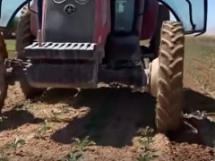 開這種農(nóng)機手一定要穩(wěn),稍微歪一點,小苗就被弄沒了